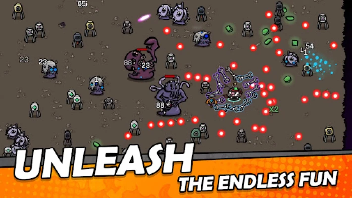 Testirajte svoje vještine preživljavanja u intenzivnim valovima koji traju od 20 do 90 sekundi, s ciljem eliminacije što većeg broja vanzemaljaca. Skupljajte materijale kako biste stekli iskustvo i otključali moćna poboljšanja u trgovini između pojedinih valova napada. Strateški odabiri i brze reakcije ključni su za preživljavanje i napredak. Pridružite se Brotatoovoj epskoj borbi i dokažite da i najmanji heroj može postati najveća legenda. Imajte na umu da je pohrana podataka u oblaku dostupna samo kada ste povezani na internet.
