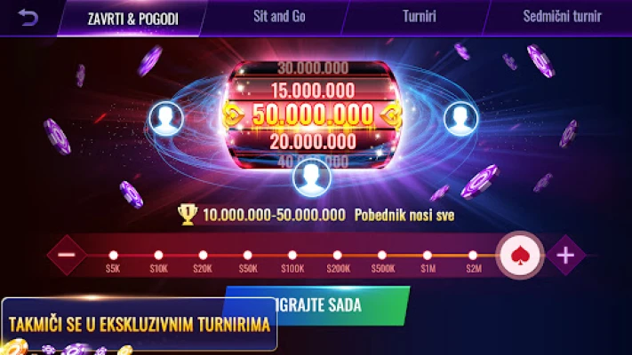 Svaki dan donosi nove prilike za gomilanje žetona; zavrtite Dnevni kotač sreće za šansu da osvojite do milijun, ili ih zaradite kroz razne bonuse poput nagrada za aktivnost fan stranica i preporuke prijatelja. RallyAces Poker nudi mnogo više od klasičnog Texas Hold'ema. Uživajte u brzim ili sporim stolovima, izazovnim Sit & Go formatima te svakodnevnim i tjednim turnirima. Za one željne raznolikosti, tu su i uzbudljivi "Kazino Pro Sustav" za predviđanje pobjednika, "Žandari ili Bolje" za munjevite dobitke inspirirane blackjackom, kao i jedinstvene kazino kartaške igre koje nećete pronaći nigdje drugdje. Povežite se s prijateljima, četajte uživo za stolom, koristite animirane emotikone za blefiranje ili navijanje te se penjite na Ligaškim ljestvicama za ekskluzivna priznanja.