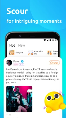 Izrazite se u potpunosti i ostavite snažan prvi dojam zahvaljujući svom profilu, pri čemu je preko 90% korisničkih fotografija verificirano, osiguravajući transparentnost i vjerodostojnost. Podijelite djeliće svog svakodnevnog života i omiljene trenutke s drugima na Zeetoku, produbljujući međusobno razumijevanje i otkrivajući zajedničke interese. Intuitivnim prelaskom prsta udesno izražavate sviđanje, dok prelaskom ulijevo nastavljate potragu. Za još lakše povezivanje, dodajte Zeetok kao widget na početni zaslon i odmah ćete vidjeti predložene nove prijatelje u blizini, možda čak s istim hobijima ili glazbenim ukusom!